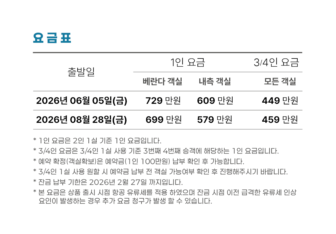 ★ 예약 신청을 남기시면 '반하다 크루즈'에서 선사 예약 가능여부 확인 후 예약 확정 연락을 드립니다.