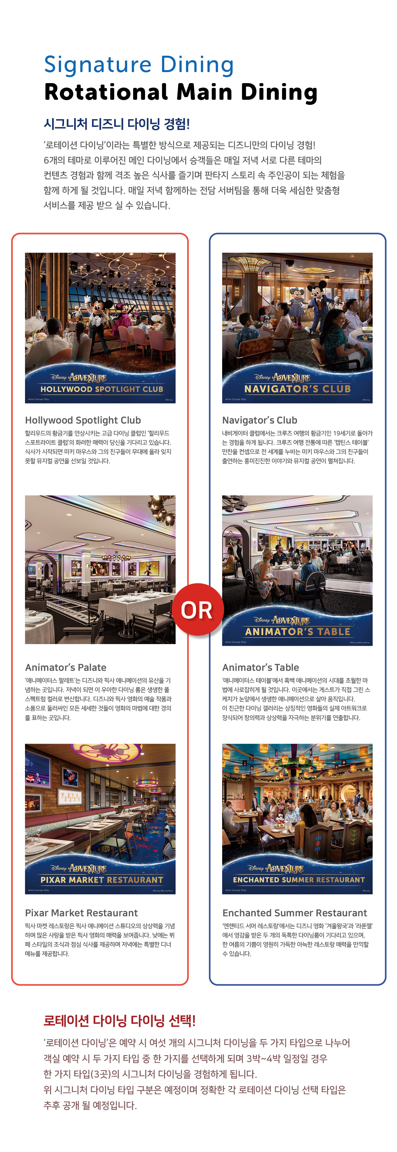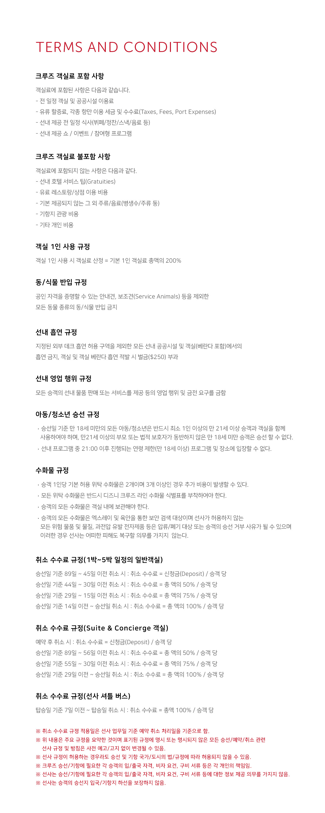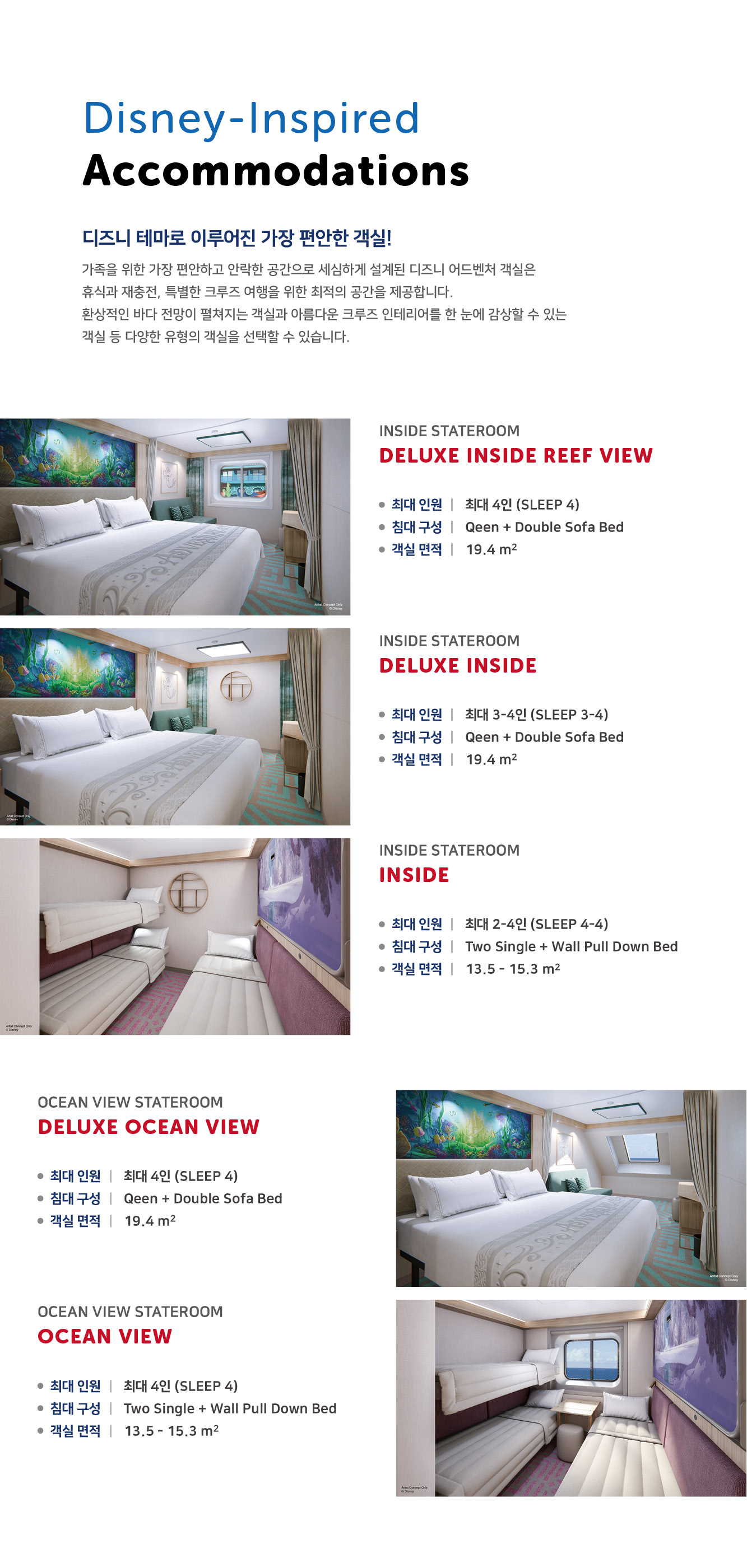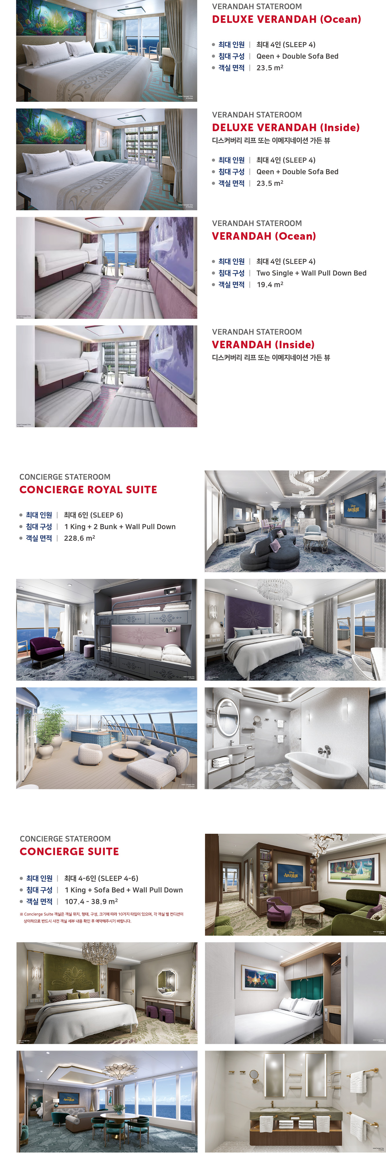 디즈니 크루즈 상품은 출발일별 / 객실별